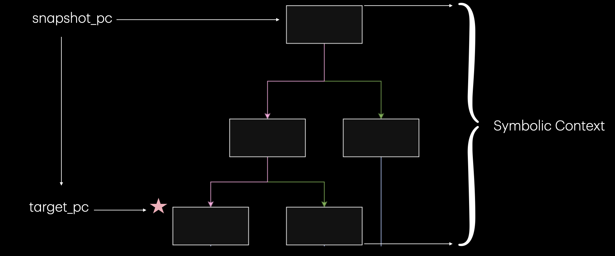 Path Exploration: As execution progresses, whenever a symbolic program counter (PC) is encountered, typically a branch instruction representing a conditional statement that depends on symbolic variables, the control flow diverges